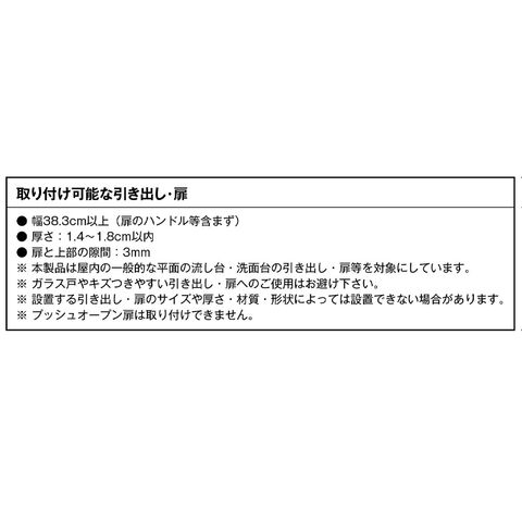 ※本製品は屋内の一般的な平面の流し台・洗面台の引き出し・扉等を対象にしています。