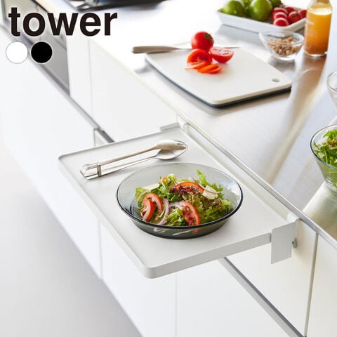 山崎実業 tower シンク扉折り畳み棚 ホワイト 10519 /ブラック 10520 タワー | キッチン収納 折りたたみ収納 ランドリー収納 収納棚 コンパクト ちょい置き タオル置き ラック 引き出し 白 黒 パジャマ 着替え おしゃれ