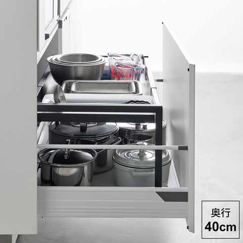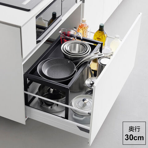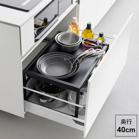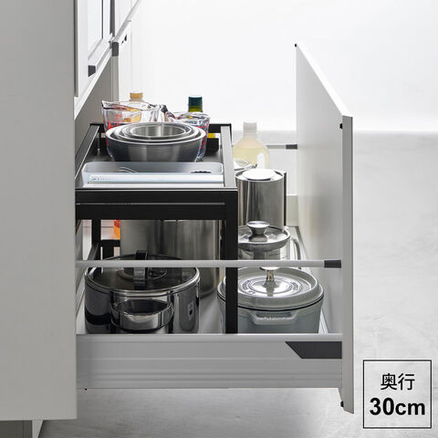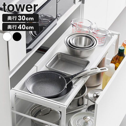 山崎実業 tower タワー シンク下引き出し幅伸縮スライドラック 奥行30cm/40cm ホワイト 10356/ブラック 10357 | 伸縮ラック スライドラック キッチン収納 引き出し シンク下 調節可能 整理 省スペース 台所