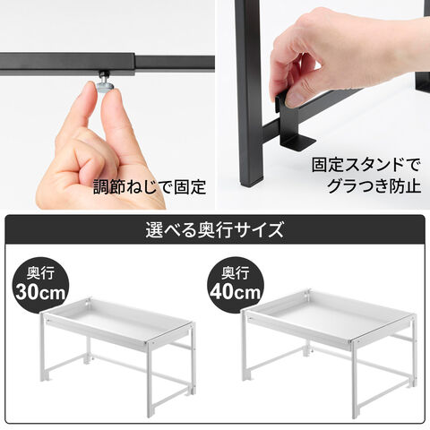 幅が伸縮できるため、設置場所に合わせて調節可能。