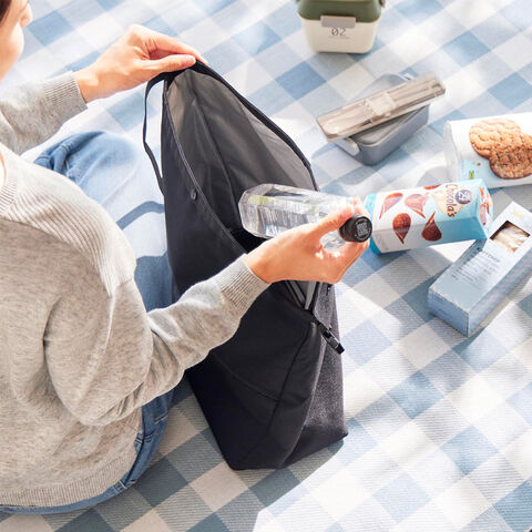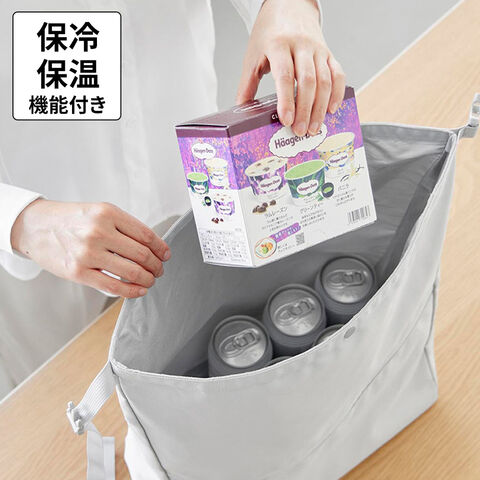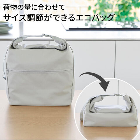 荷物の量に合わせてサイズ調節ができる、保冷・保温機能付きのエコバッグ。