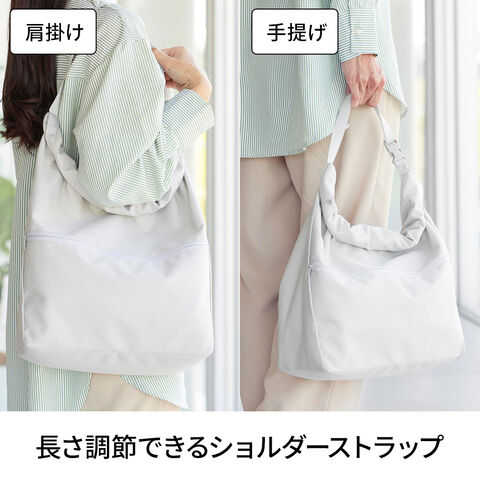 調節が可能なショルダーストラップショルダーストラップは長さ調節が可能で、肩掛け・手提げのどちらにも対応しています。
