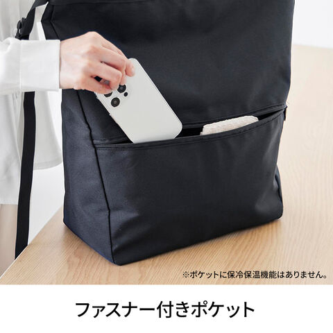 ポケット付きファスナー付きのポケットがついています。※ポケットに保冷・保温機能はありません。
