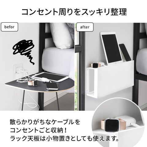 山崎実業 tower タワー コンセントごと隠せる壁付けケーブルラック ホワイト 10785/ブラック 10786 | ルーター収納 ルーターラック ケーブル収納 おしゃれ 白 黒 配線 コンセント 壁付けラック 壁掛けボックス モデム収納 ケーブルボックス 配線ボックス