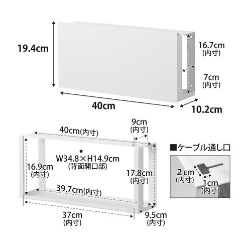 内寸サイズ(約):収納部/幅39.7×奥行9.5×高さ17.8cm 天板/幅40×奥行9cm ケーブル通し口/幅2×奥行1cm