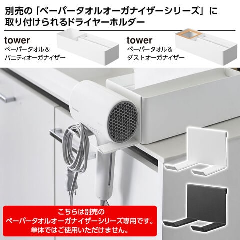 山崎実業 tower ペーパータオルオーガナイザーシリーズ専用ドライヤーホルダー ホワイト 10739 / ブラック 10740 タワー | ドライヤーホルダー ドライヤー収納 10739 10740 10743 10744 専用アクセサリ 洗面所収納 銭湯 サウナ おしゃれ 白 黒