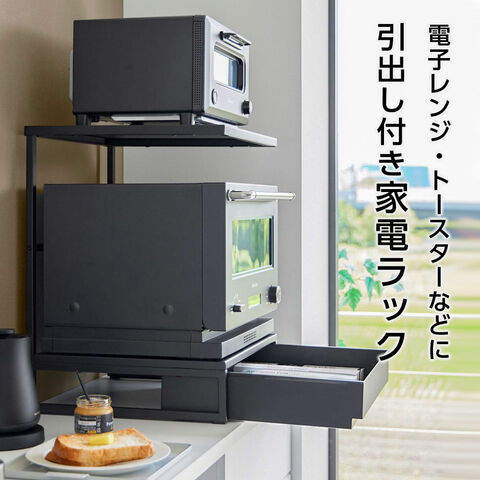 山崎実業 tower タワー 引き出し付きキッチン家電下ラック 2段 ホワイト10654/ブラック10655 | レンジ台 レンジラック トースターラック 引出し付き カウンター上 電子レンジ オーブン 収納 キッチン