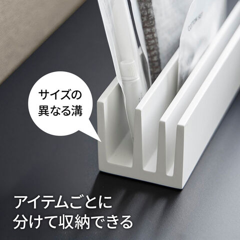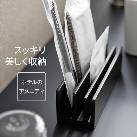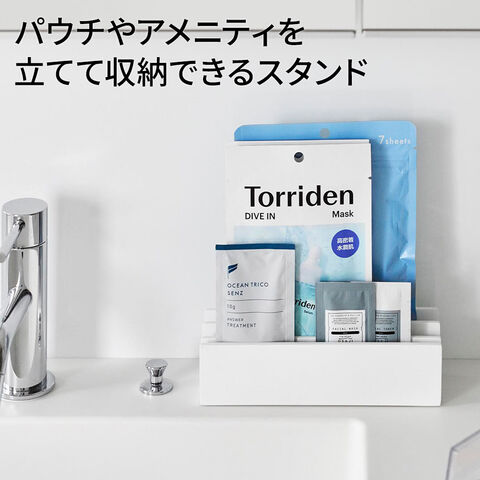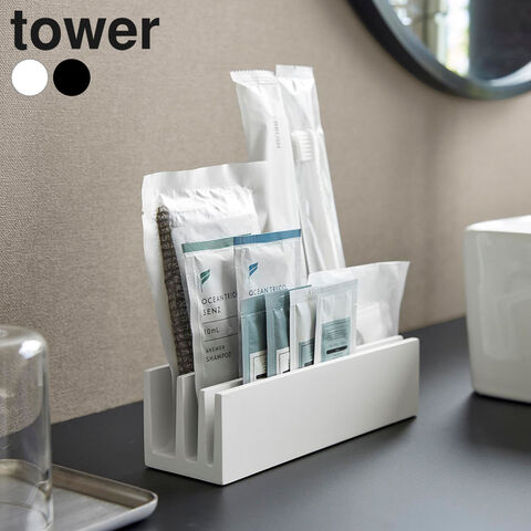 山崎実業 tower タワー パウチ&アメニティスタンド 横型 ホワイト 10575/ブラック 10576 | 小物収納 アメニティスタンド 小物スタンド 立てて収納 フェイスパック アメニティ 化粧品 コスメ サンプル パウチ 高級感 ホテルライク 洗面台 洗面所 脱衣所