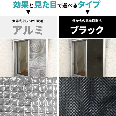 効果と見た目で選べるバリエーションアルミの屋外側はアルミ面。アルミ面が太陽光をしっかり反射します。より効果を実感されたい方におすすめ。