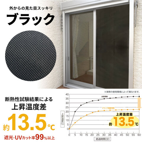 室内の温度上昇を抑える窓付近の室内の温度差は、アルミなら27.7度、ブラックなら13.5度。部屋の温度上昇を抑えて快適な空間を保てます。節電にも。