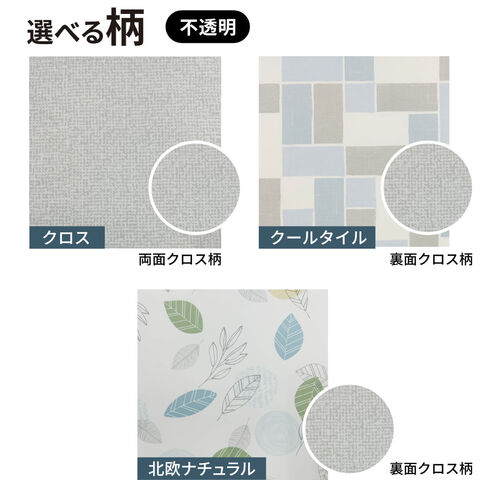 クロス柄、クールタイル柄、北欧ナチュラル柄の3種類からお好みに合わせて選べます。※外から見える柄は3種ともクロス柄です。