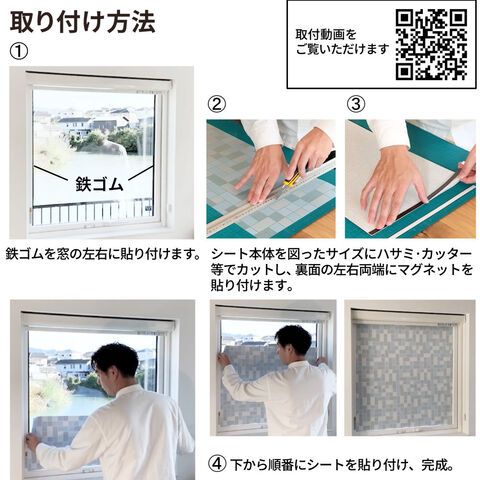 窓の両端に鉄ゴムを貼り付け、シート側にマグネットを装着するだけで誰でも手軽に取り付けられます。