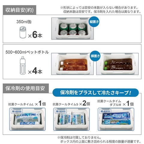 いずれかの保冷剤を使用すると効果的です。※クーラーボックスの内側上面に敷き詰められる程度の数量が適量数です。