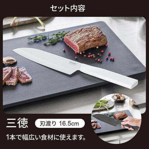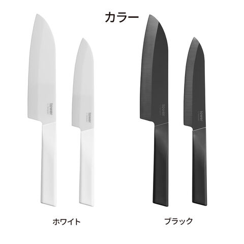 包丁セット 山崎実業 tower タワー セラミックナイフ 三徳包丁&ペティナイフ 2本セット ホワイト/ブラック | 両刃 食洗機対応 日本製 軽量 軽い キッチンナイフ 切れ味 長持ち 錆びない 国産 白 黒 シンプル おしゃれ かっこいい
