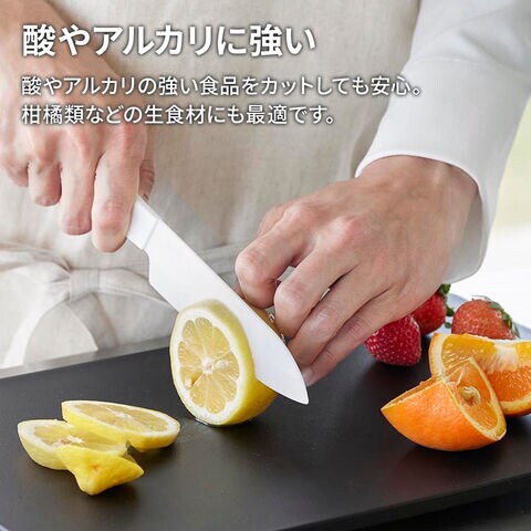 軽く、切れ味が滑らか超高圧で成形された高密度のセラミック刃が、トマトなどの潰れやすい食材もスパッと切れる快感を実現。