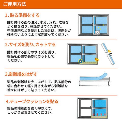 窓や扉の端に貼るだけで、すき間風を防ぐチューブクッション。