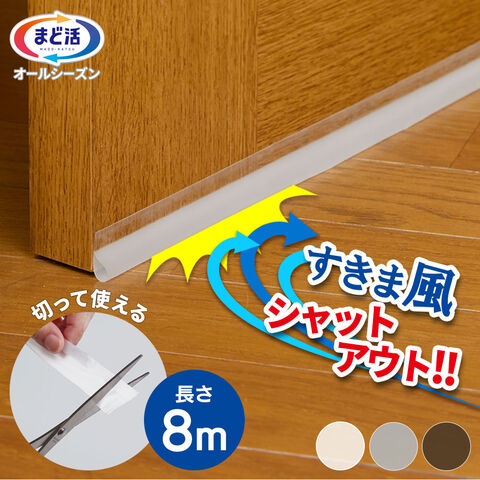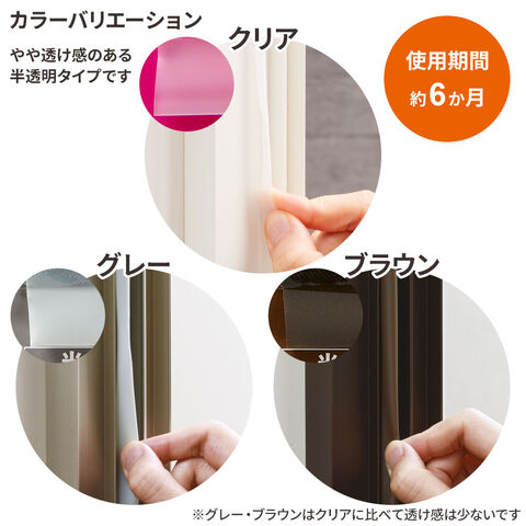 すきま風テープ すき間風チューブクッション 8m クリア/グレー/ブラウン | 長さ8m 隙間テープ 省エネ 節電 エコ 防寒 窓 ドア 引き戸 サッシ すきま風防止 すき間 クッション ゴム 半透明 H-2105 H-2108 H-2109