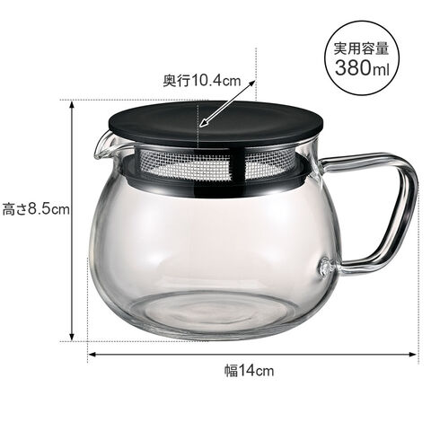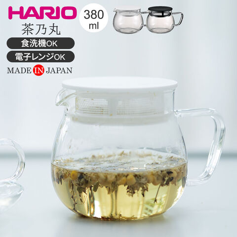 HARIO ハリオ ティーポット 茶乃丸 380ml ホワイト / ブラック | ガラス ガラスポット 急須 耐熱ガラス 茶こし付き フィルター付き 洗いやすい 熱湯 お茶 電子レンジ 食洗機対応 日本製