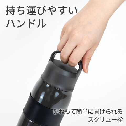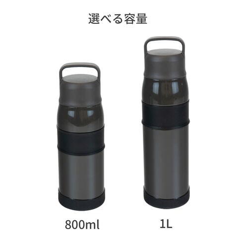 水筒 フォルテック ハンドル付きスクリュー栓マグボトル ブラック 800ml/1L | マグボトル 水筒 保冷 保温 0.8L 1.0L 直飲み スクリュー ハンドル付き 持ち手付き ステンレスボトル 真空断熱 マイボトル スポーツ アウトドア ジム 部活 子供 大人 かっこいい 黒