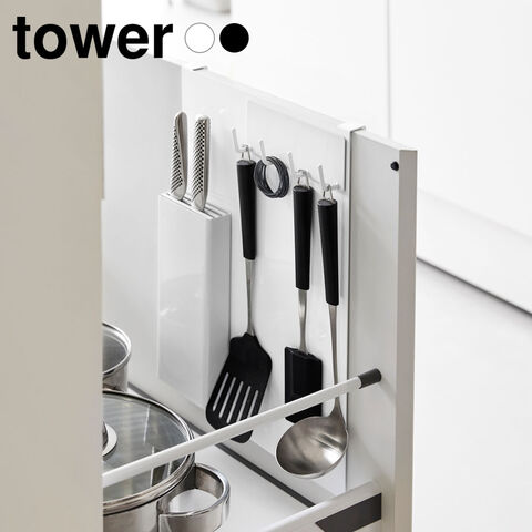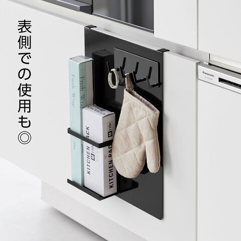 カスタマイズ自在スリムな設計により扉の表側・裏側のどちらでも設置可能で、よく使うキッチンツールを手に取りやすく整理するのに最適。