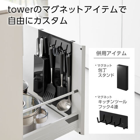 山崎実業 tower シンク扉スチールパネル タワー ホワイト10783/ブラック10784 | シンク扉 収納 パネル マグネット キッチンパネル スチールパネル 扉裏収納 引っ掛け 磁石 浮かせる収納 キッチンツール