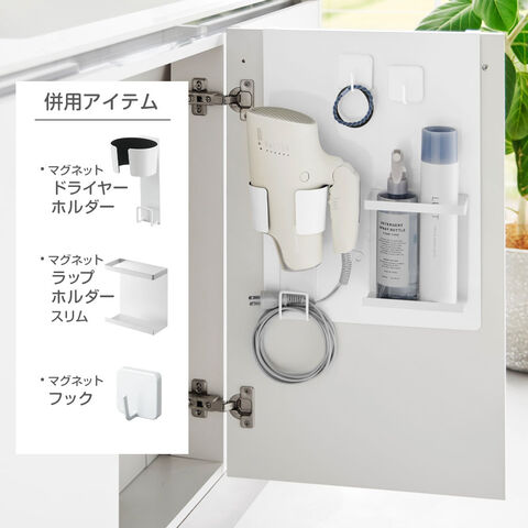 清潔感のあるスチール製頑丈なスチール素材を採用しているため安定感があり、マグネット式のフックやホルダーを組み合わせて自分好みの収納を作れます。