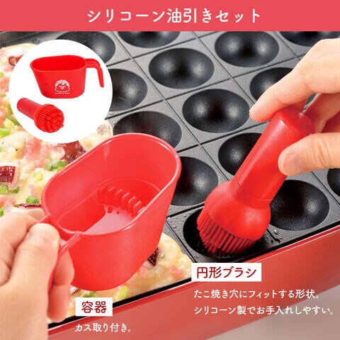 シリコーン油引きセット塗りやすい丸形ブラシで、たこ焼き穴にフィットします。