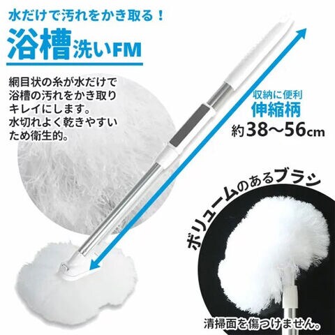 水だけで汚れが落ちる伸縮柄付きブラシ「浴槽洗いM」洗剤不要!網目状の糸が水だけで浴槽の汚れをかき取りキレイにします。