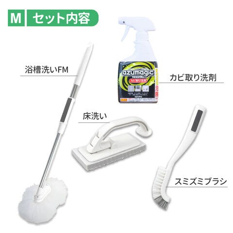アズマ工業 マグネットで付く お風呂掃除&カビ取り洗剤セット (浴槽洗いFM+床洗い+スミズミブラシ) sm@rt777・779・781・CH880 | お風呂掃除 浴室 掃除 白 マグネット 収納 浴槽 床 バスルーム バスタブ 黒カビ 赤カビ サッシ 隙間 鏡 壁 溝 みぞ 水アカ カビ 湯アカ