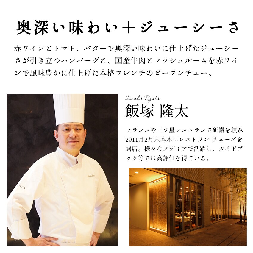 【 レストランリューズ 飯塚隆太監修 濃厚デミグラスソースハンバーグとビーフシチュー 】 150g×3パック 220g×2パック 送料無料 贈り物 ギフト グルメギフト プレゼント ごちそう お惣菜 惣菜 おかず 洋食 ハンバーグ シチュー お取り寄せ セット 詰め合わせ 工場直送商品