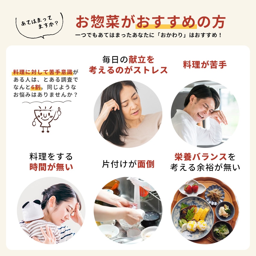 一人暮らしの方 栄養バランスを考えたい方 忙しい方 育ち盛りのお子様 単身赴任の方 妊娠中 産前産後 共働き