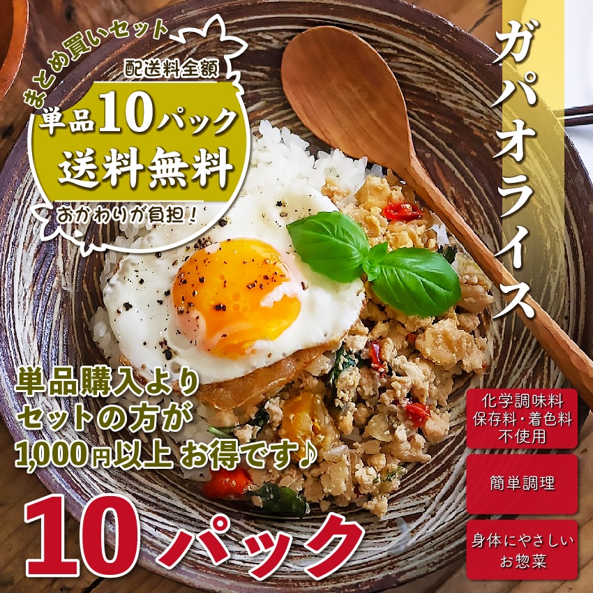 【 送料無料 】 お惣菜おかわり ガパオライス 10パック まとめ買いセット 【 お取り寄せ 惣菜 お惣菜 セット ガパオライス タイ料理 ライス 多国籍料理 冷凍食品 冷凍 おかず 食品 簡単 時短 弁当 手作り 非常食 レンチン ギフト 】