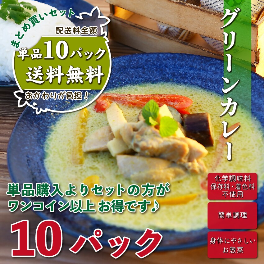 【 送料無料 】 お惣菜おかわり グリーンカレー 10パック まとめ買いセット 【 お取り寄せ 惣菜 お惣菜 セット グリーンカレー タイ料理 カレー ココナッツミルク 多国籍料理 冷凍食品 冷凍 おかず 食品 簡単 時短 手作り 非常食 レンチン ギフト 】