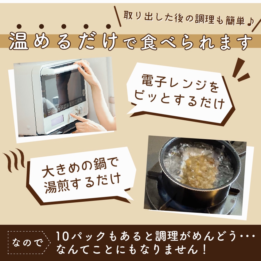 | 使用上の注意 | 電子レンジ又は湯せんにて調理してください。温め時間は商品の袋をご確認ください。 温めの際は火傷に十分ご注意下さい。 |