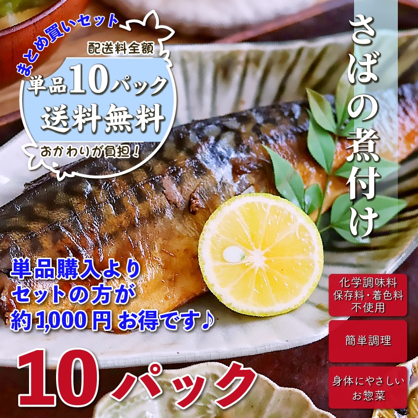 【 送料無料 】 お惣菜おかわり さばの煮つけ 10パック まとめ買いセット 【 お取り寄せ 惣菜 お惣菜 セット 煮物 さば 煮魚 煮つけ 冷凍食品 魚 さかな 和食 冷凍 おかず 食品 簡単 時短 弁当 手作り 非常食 レンチン ギフト おかわり 】