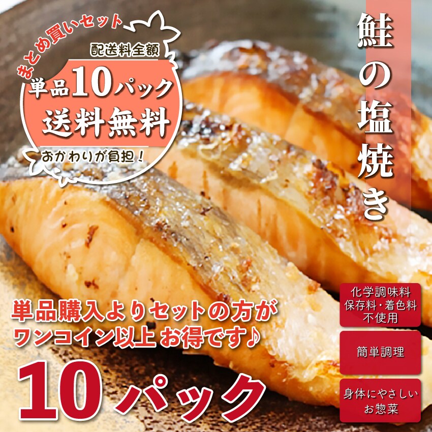 【 送料無料 】 お惣菜おかわり 鮭の塩焼き 10パック まとめ買いセット 【 お取り寄せ 惣菜 お惣菜 セット 塩焼き 鮭 さけ しゃけ 魚 冷凍食品 さかな 和食 冷凍 おかず 食品 簡単 時短 手作り 弁当 非常食 レンチン ギフト お惣菜おかわり 宅配 】