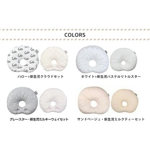 | ハロー+新生児クラウド、ホワイト+新生児パステルリトルスター、グレースター+新生児ミルキーウェイ、サンドベージュ+ミルクティーの4種類からお選びください。 |