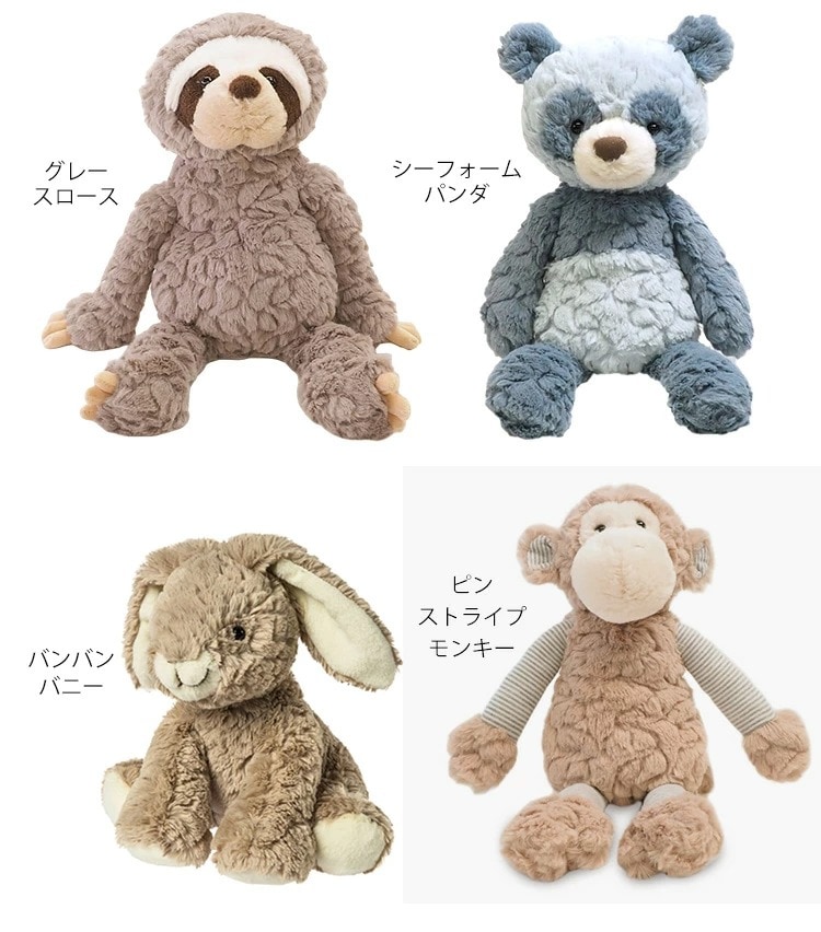 ●クリームベアM ●グレーベアM ●グレーモンキーM ●クーパーパピーM ●グレースロースM ●シーフォームパンダM ●バンバンバニーM ●ピンストライプ モンキーM ●ライイング パピーM の9種類からお選びください。 |