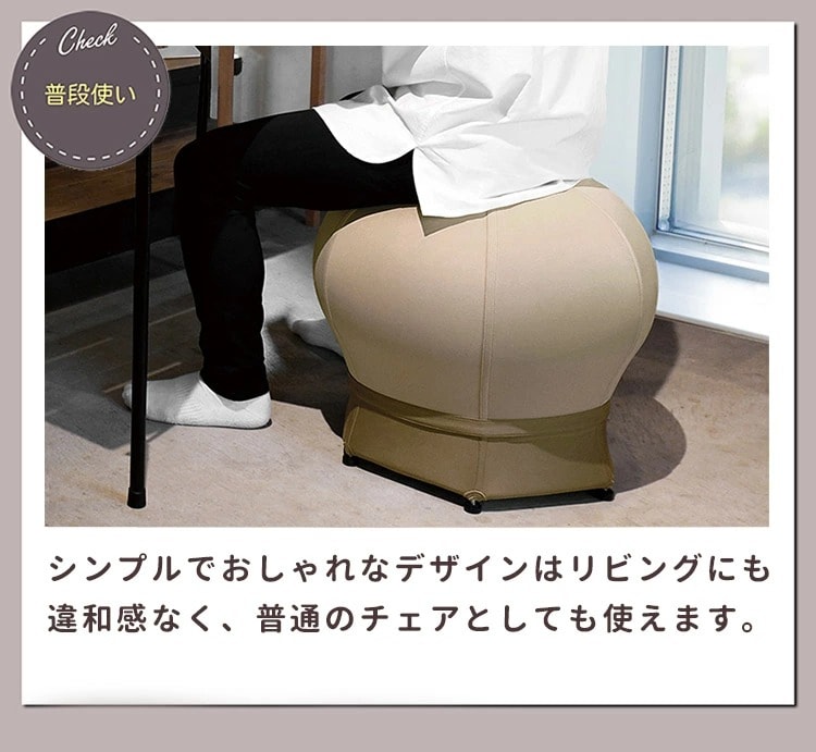 寝かしつけを卒業した後も、もちろん普通のチェアとしてお使いいただけます。シンプルでおしゃれなデザインはリビングにも違和感なく、バランスボールチェアとして、健康維持や姿勢改善にも役立ちます。末永く愛用できる一台です。