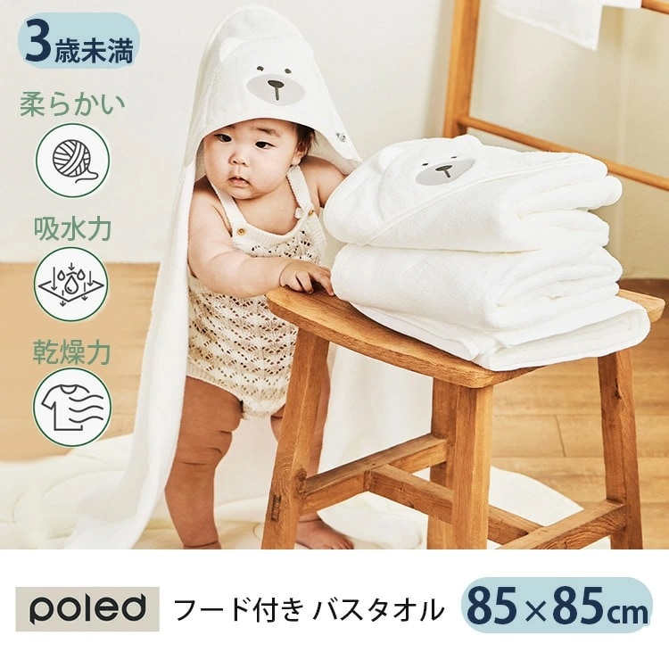 Poled フード付き バスタオル 大判サイズ (簡単着脱 フード 綿100% コットン 子ども用 こども 水遊び 0歳 1歳 2歳 3歳 吸水力 出産祝い プレゼント 誕生日プレゼント タオルケット 柔らかい)【送料無料】