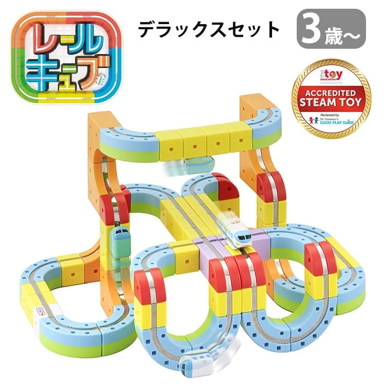 レールキューブ デラックスセット サンスマイル(STEAM教育 特許取得 創造力 手先 レール 3歳 3才 電車 電車ごっこ 車 くるま クルマ 乗り物 おもちゃ 誕生日プレゼント)【送料無料】