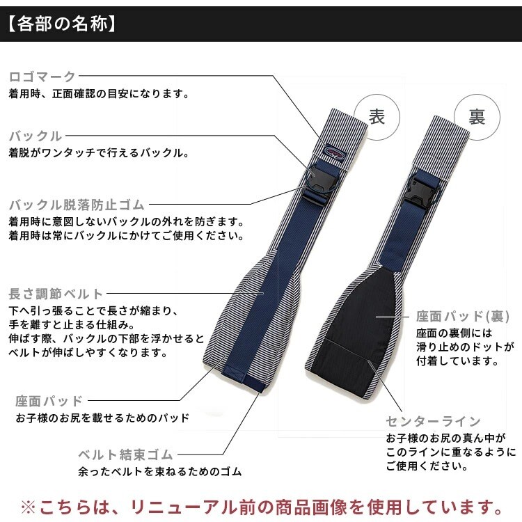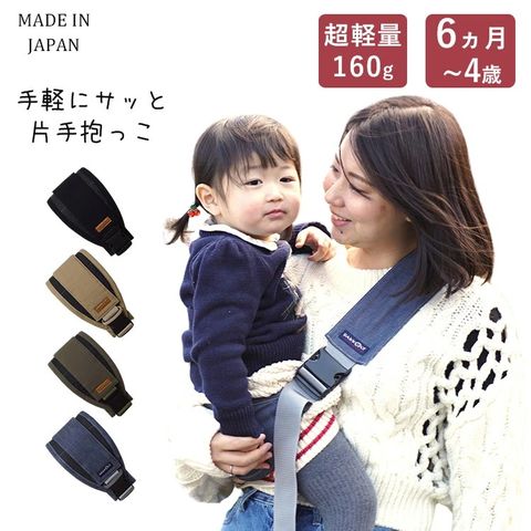 1. 腰がすわる頃(6?7ヶ月目安)から22kgまでの お子さんの片手抱っこをサポート ⇒ 10kgを越えるお子さんは、両手で抱っこするのでも大変。荷物があるときやお母さんにとっては、特に強い味方です。 2. 超軽量 約160g 持ち運びもコンパクト ⇒ Lサイズ卵2個分の重さです。 バッグに入れておいても負担にならない大きさなので、 もしもの備えとして万全です。 3. ひとりで簡単に装着 降ろす時もバックルを外すだけ ⇒ バックルには外れ防止のゴムが付いており、着用時の脱落を防ぐので、簡単かつ安心。 4. ワンサイズで調節が簡単! パパもママも一緒に使える。 ⇒肩ひもの長さが簡単に調整できるので、 140cm台の小柄なママから180cm超えの長身のパパまで兼用可能です。 5. 製造?検品梱包まで全て安心の日本製 ⇒ 生産された製品は1着ずつ機械を通し、徹底した検査を通過した上で、皆さまに安心してお届けできる製品になっています。 6. 洗濯機で丸洗いできるので、汗をかく夏も快適! ★ベテラン保育士(現役園長)、助産師(歴20年)からも推薦をいただいています。 |