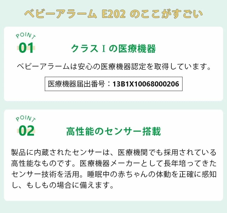 | 商品名 | 乳児用体動センサ ベビーアラーム E-202 |