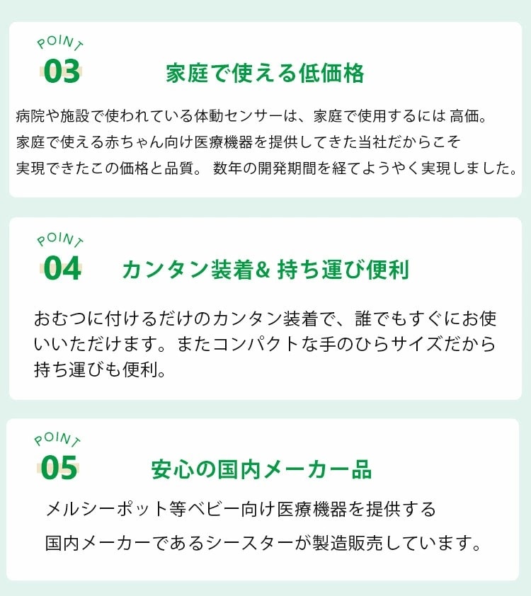 ■keyword:ベビーテックアワード2023大賞/ベビーテックアワード/2023/2023年/4580211772744/1220202875/E-202/E202/改良/リニューアル/シースター/株式会社シースター/ベビースマイル/乳児用体動センサ/ベビーアラーム/ベビーセンサー/乳児用/体動センサー/体動センサー/呼吸センサー/無呼吸/呼吸/こきゅう/見守り/お昼寝/SIDS/アラーム/医療機器/一般医療機器/見守り/ベビーアラーム/ベビーモニター/モニター/アラーム/寝返り/セーフティグッズ/安心/安全/安全性/助かった/Baby/Alarm/SIDS/Sids/転落/窒息/乳幼児突然死症候群/予防/防止/体動検知/体動/検知/0歳/0才/0ヵ月/0ヶ月/0か月/妊娠/出産/マタニティ/妊娠祝い/懐妊祝い/夜泣き/ベビーヘルスケア/健康/ヘルス/ホームメディカル/おうちメディカル/メディカル/迎春/お正月/元日/元旦/新年/年末年始/大晦日/母の日/父の日/敬老の日/オールシーズン/BabySmile/ベビーシャワー/ベビーシャワーギフト/Babyshower/育児/育児用品/育児グッズ/いくじ/子育て/子育て用品/子育てグッズ/こそだて/保育/子供/こども/キッズ/キッズ用/キッズ用品/ベビー/ベビー用品/ベビー向け/Baby/BABY/baby/赤ちゃん用品/赤ちゃん/あかちゃん/赤ちゃん用/赤ちゃん向け/子供用/こども用/子ども用/新生児/乳児/乳幼児/ベビーギフト/出産祝い/出産準備/こどもの日/子どもの日/子供の日/ガールズ/ガール/ボーイ/ボーイズ/男子/女子/男児/女児/男児用/女児用/男児向け/女児向け/男の子向け/女の子向け/男の子/女の子/おとこのこ/おんなのこ/初孫/孫/姪/甥/姪っ子/甥っ子/誕生日祝い/誕生祝い/誕生日/お誕生日/誕プレ/誕生日プレゼント/バースデー/クリスマスプレゼント/サプライズ/友人/友達/友だち/記念/ギフト/プレゼント/贈り物/おくりもの/贈りもの/おくり物/贈答品/プチギフト/おもたせ/お祝い/御祝い/内祝い/2024キッズデザイン賞/キッズデザイン賞/賞/2024/2024年/