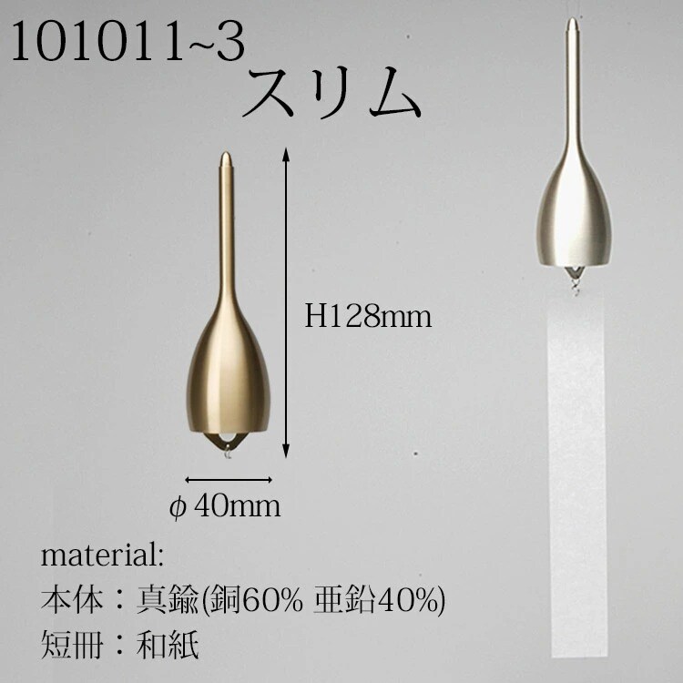 | 商品名 | 能作 風鈴 スリム(ゴールド・シルバー・ピンクゴールド) 真鍮 |