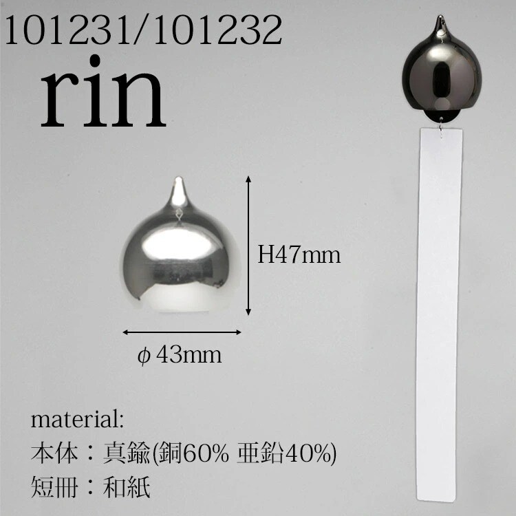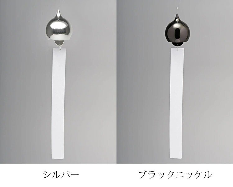 この風鈴は、富山県高岡市の伝統産業である「鋳物」の技術により製作され、真鍮ならではの澄みきった音色を楽しむことができます。 真鍮素材にシルバーは銀メッキ、ブラックニッケルはニッケルメッキを施しています。 素材の美しさを表現する為、一品一品をミラー仕上げにし、素材の持ち味とデザインを融合させています。 |