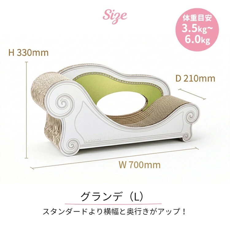 【正規販売店】エレガントなデザインのネコ用爪とぎ兼ベッドです。国産ダンボール使用で削りかす少なく長持ち。