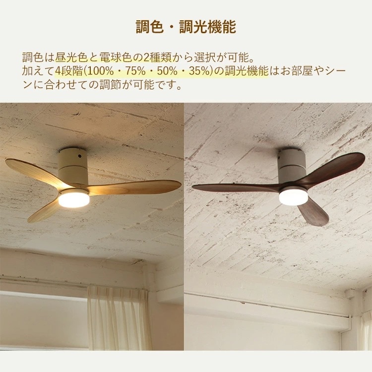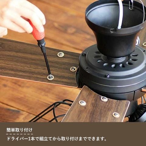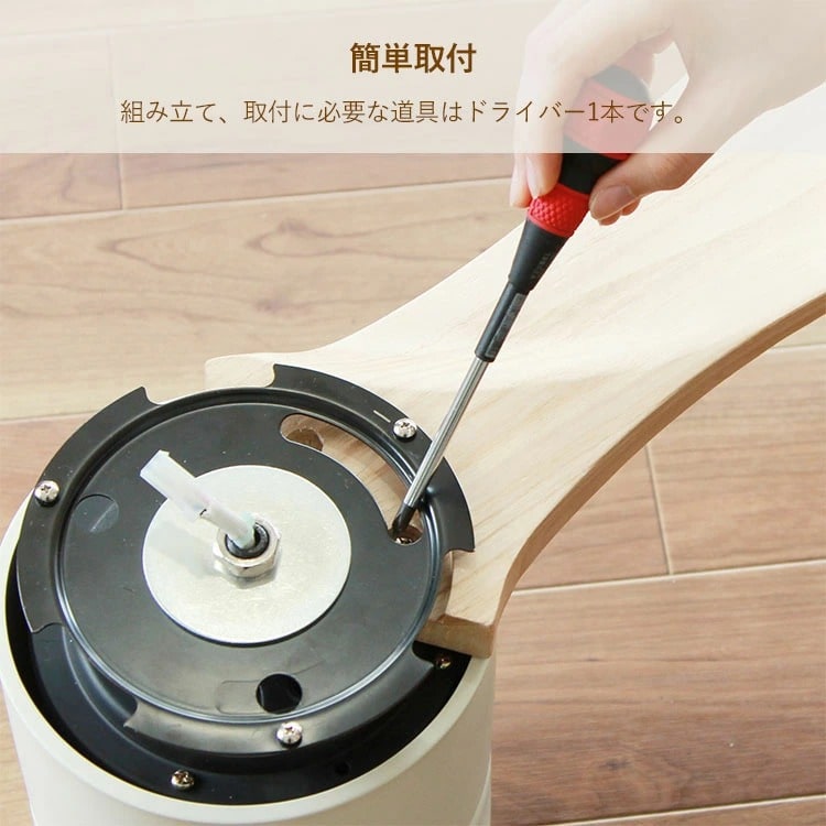 | 他にはない、本物の木を使用したブレードが特徴です。MDFとは一線を画す、しっとりと滑らかな質感。木目や色合いは一つとして同じものがなく、あなただけの特別な空間を演出します。ナチュラルな雰囲気ながらも、その存在感は抜群。優美な形状と厚みのあるブレードが、部屋の雰囲気を瞬時に格上げします。 |