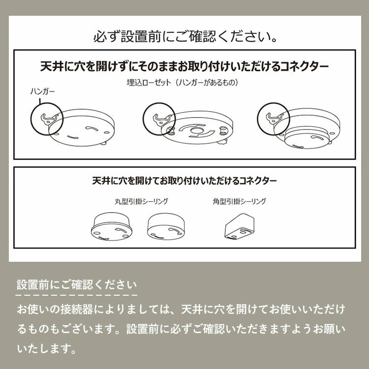 ※大きい商品となりますので、メーカーより納品されたパッケージ(箱)にそのまま伝票を貼り付けて発送をさせて頂いております。 ご注文後のお客様都合でのキャンセル・交換等は一切お受け付け出来ませんので、予めご了承頂きますようお願い致します。 ※本商品は傾斜天井には設置できません。 ※調光器が接続されている電源回路(壁スイッチ)にはお取り付けできません。 必ず調光器を取り除いてから設置してください。 ※高所天井への設置の場合、事前に通常天井での動作確認をおすすめします。 ※設置ができない等の理由での返品・交換にはご対応できかねます。 ※商品の色はモニターの具合で実物と若干異なる場合がございます。予めご了承下さい。 ※デザイン、仕様等につきましては、予告なく変更する場合がございます。予めご了承下さい。 ※ご予約・お取り寄せ商品は、ご注文受付後にお客様ご注文分としてメーカーへ発注を致します為、基本的にキャンセルやご返品はお受けできません。 ※複数店舗を運営しておりますため、ご注文の入れ違い等で欠品などになってしまう場合がございます。万が一、発送が遅れる場合は、ご注文受付当日中にご案内差し上げます。誠に恐れ入りますがご了承くださいますよう、お願い申し上げます。 | |