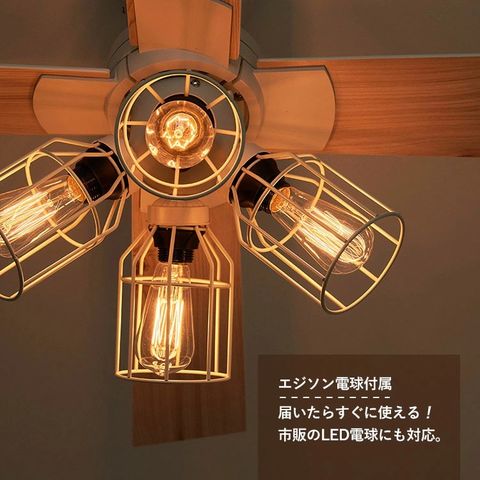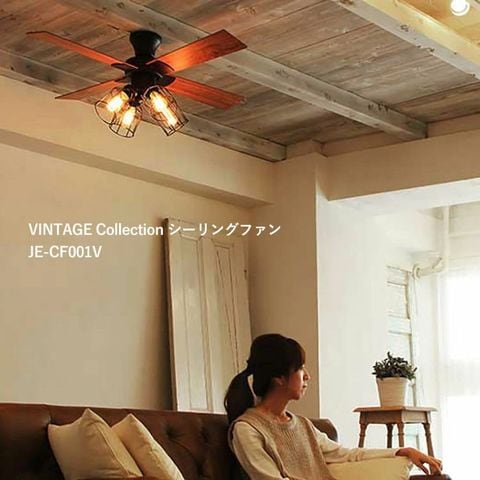 JAVALO ELF VINTAGE Collection シーリングファン JE-CF001V 【ゴールド】(ジャヴァロ エルフ 4灯 3年保証 シーリングファンライト エジソン電球付属 木目調 リモコン付 LED対応 オールシーズン)【送料無料】